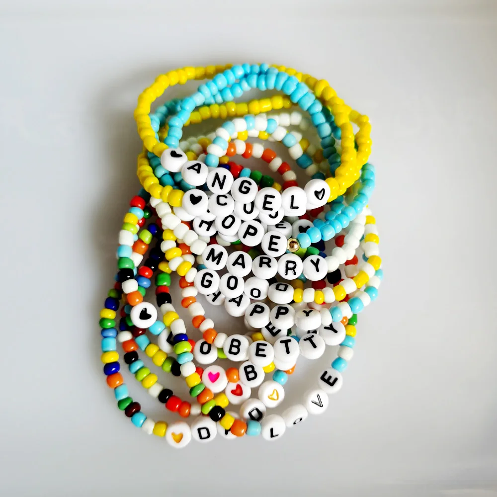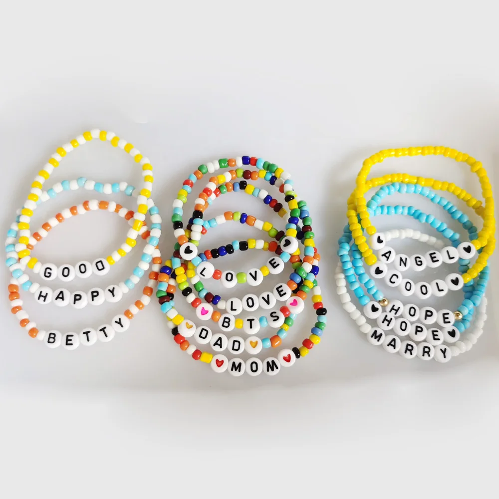 2021 модный Богемский Браслет с буквенным принтом и бусинами, оригинальный многоцветный ручной работы, недорогой летний пляжный DIY ювелирный подарок для женщин и мужчин