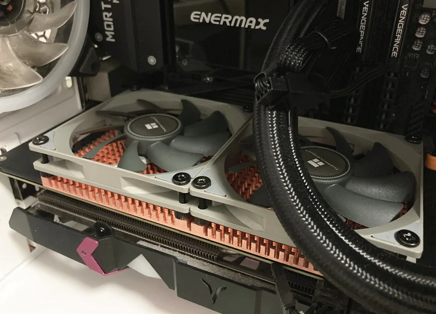 Изделие является медным теплоотводом и не включает вентилятор (может быть установлен вентилятор 90*90 мм).