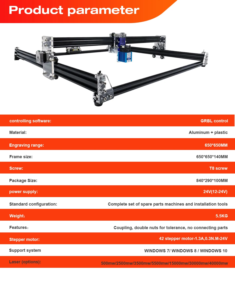 1. Резьба шпинделя и сверла: дерево, пластик, PCB, акрил, фанера и т. Д. 2. Лазерная гравировка: нержавеющая сталь (304 или 201 нержавеющая сталь/15 Вт и 30 Вт и 40 Вт лазерная головка может быть выгравирована) дерево, пластик, кожа, кость, камень, бумага, корпус, И т. д. 3. Вы можете отрегулировать фокусное расстояние лазера или настроить мощность лазера в программном обеспечении 5. У нас есть 7 вариантов, вы можете выбрать различные мощные лазеры 6. По умолчанию мы отправляем вилки европейского стандарта, если вам нужны другие вилки, пожалуйста, свяжитесь со мной, спасибо
