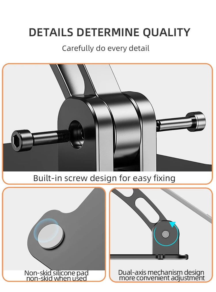 Тепловыделение-сам алюминиевый материал имеет эндотермическую функцию, помогает уменьшить температуру ноутбука естественным образом. Угол наклона вперед и дизайн открытого стиля обеспечивают больше пространства для воздушного потока, чтобы ваше устройство было прохладным.