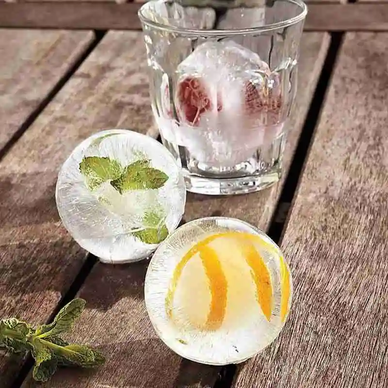 Он изготовлен из пищевого силиконового материала, который делает контакт с пищей более комфортным, и этот материал делает кубики льда более легко отпадут и легко чистятся. Сферическую форму можно легко поместить в различные контейнеры, милые и простые.