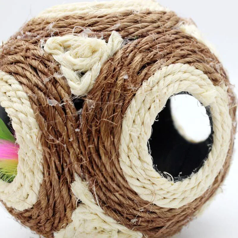 6 отверстий для домашних животных сизаль веревка плетеные шарики Прорезыватель Играть Игрушка Жевательная погремушка царапина ловушка игрушка Интерактивная царапина жевательная игрушка для домашних животных кошка собака
