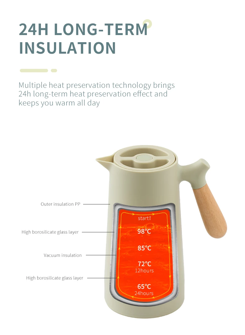 Большой емкости 1Л термос скандинавский термоизоляционный чайник бытовой Теплоизоляционный горшок стеклянный вкладыш термос бутылка для горячей воды