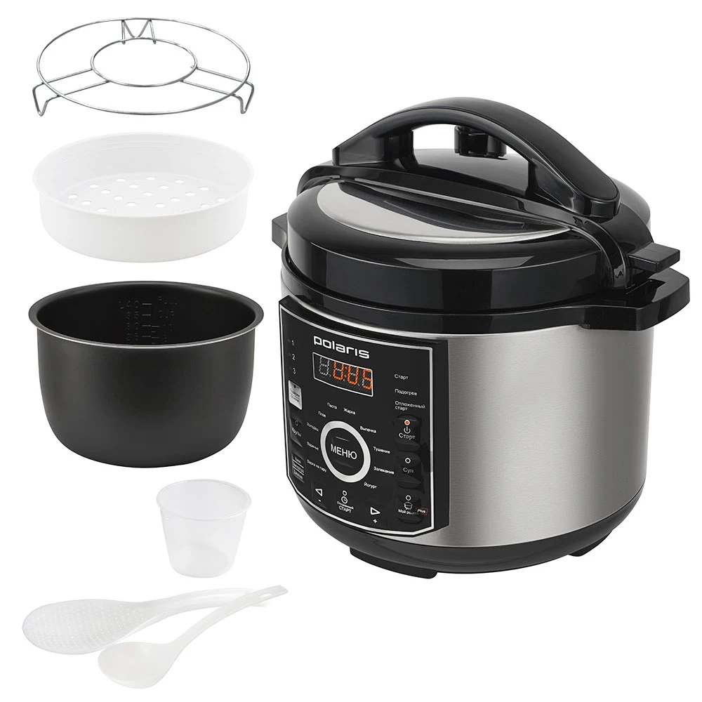 2 in 1 multivark with pressure. You can cook with or without pressure. 300 cooking modes with function is My plus recipe. Up to 70% faster prepares on programs with pressure (cold, extinguishing). Bowl with non-stick coating biotore-5 liters. Power: 1000 W. Multivark with pressure. Work modes: jam, dyeing, baking, frying, pasta, yogurt, cooking for couple, cereals, cold, baked, milk porridge, soup, heating, my recipe plus. 3 levels of pressure (for preparation of products of different density and obtaining the optimal degree of readiness of the dish according to your taste). A delay timer of up to 24 hours allows you to prepare food by the appointed time. Maintenance of temperature 24 hours. Possibility of canceling automatic heating. Preservation of the program in power supply of power-2 hours. Sound indication at the end of the program. Large multifunctional display. Bowl with non-stick coating. the volume of the bowl allows you to prepare a dish up to 10 servings. The bowl can be washed in a dishwasher. The tightness of the bowl ensures the safety of useful elements in the products. Removable cord.