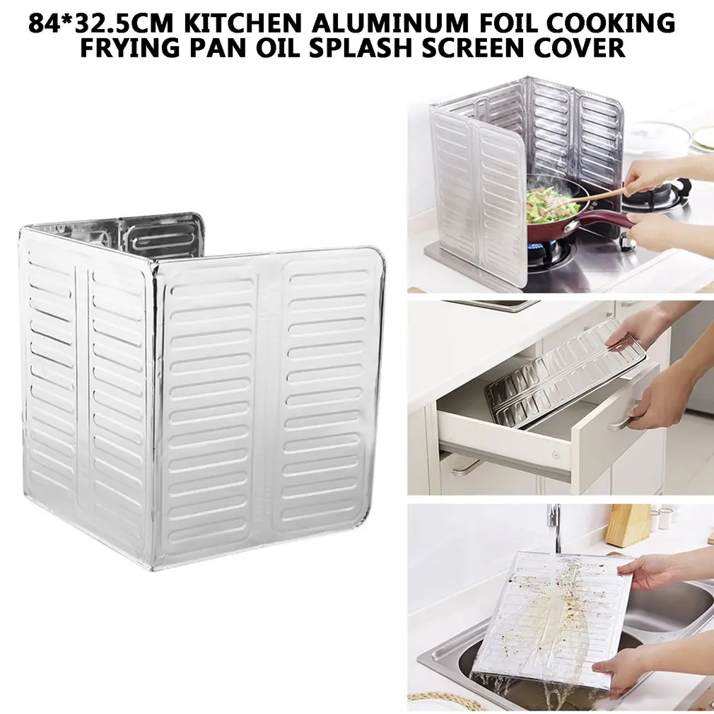 Novelty 84*32.5cm Kitchen Aluminum Foil Cooking Frying Pan Oil Splash Screen Cover Anti Splatter Shield Guard Oil Divider