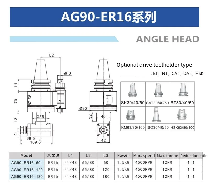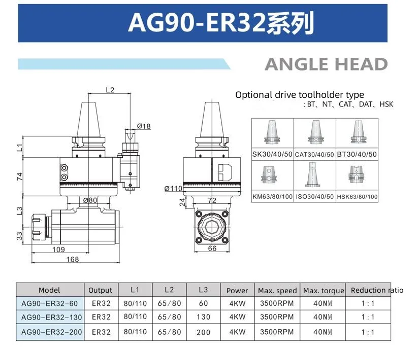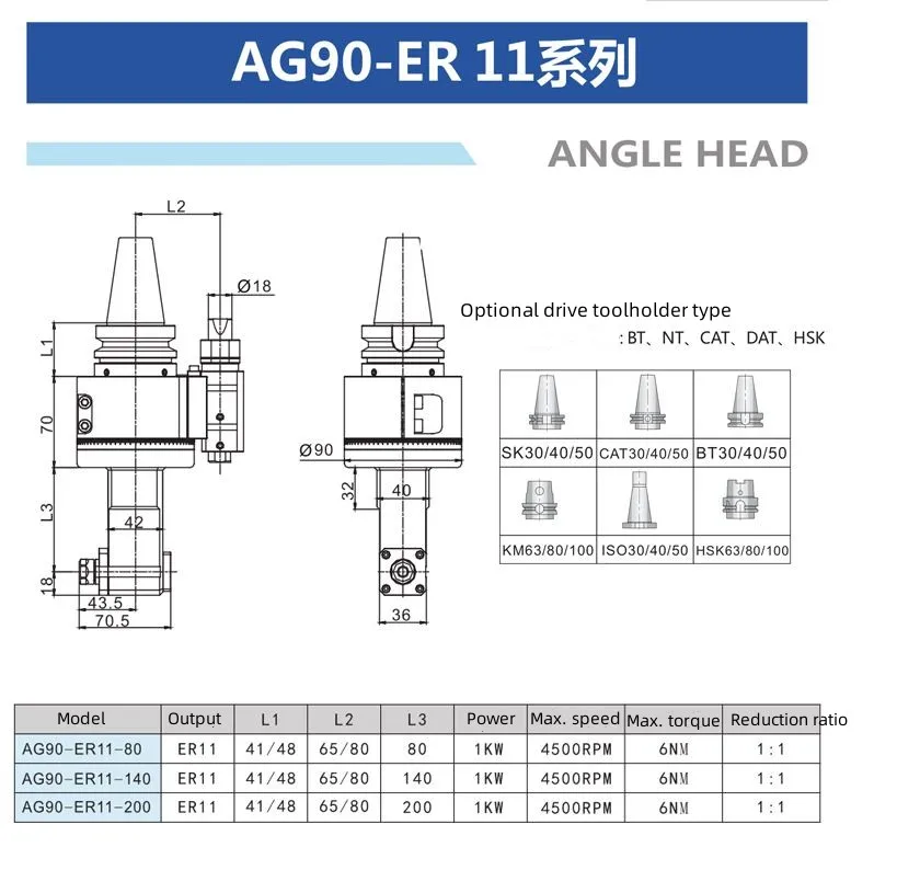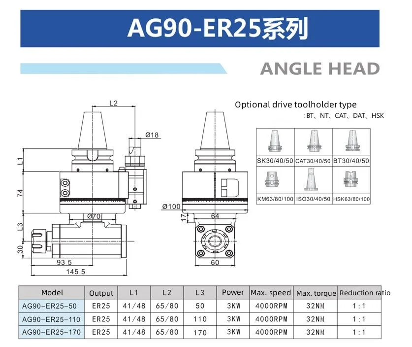 CNC обрабатывающий центр 90 ° BT40 BT50 Угловая головка боковая фрезерная головка горизонтальная фрезерная головка правый угол фрезерная головка