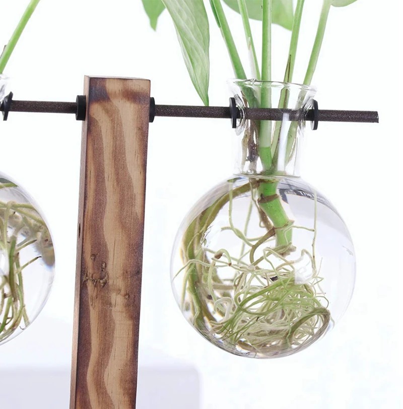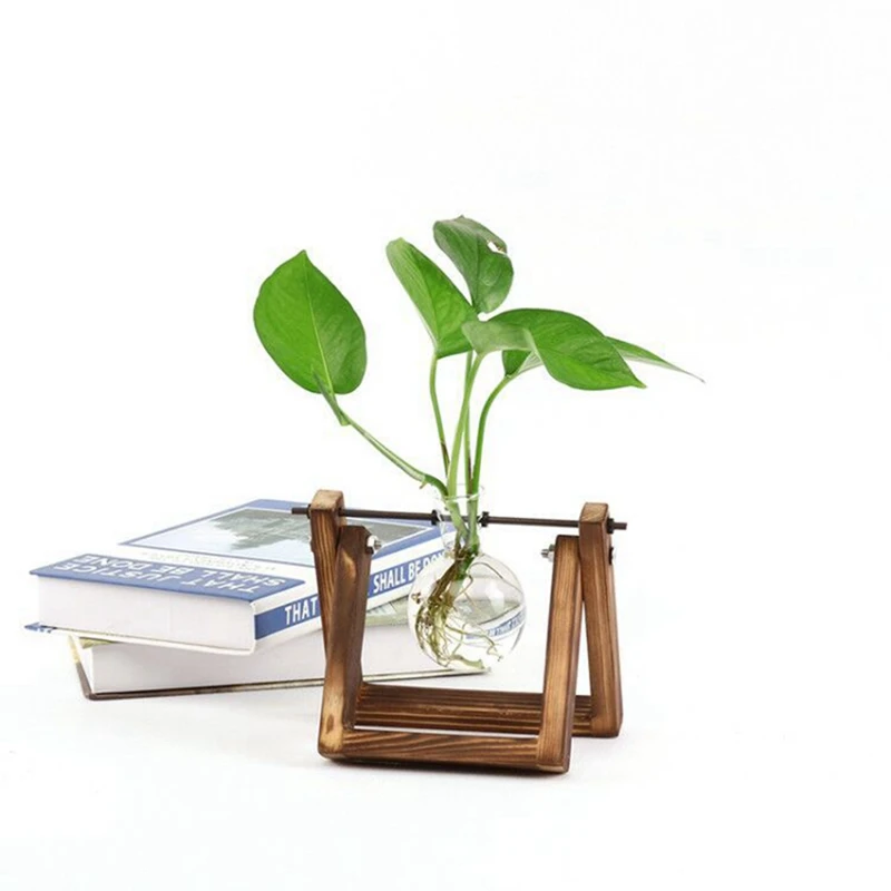 DIY плантатор с ретро дизайном, мини-ваза в форме лампы в деревянной подставке. Гладкая поверхность, хорошая воздухопроницаемость, красивый внешний вид