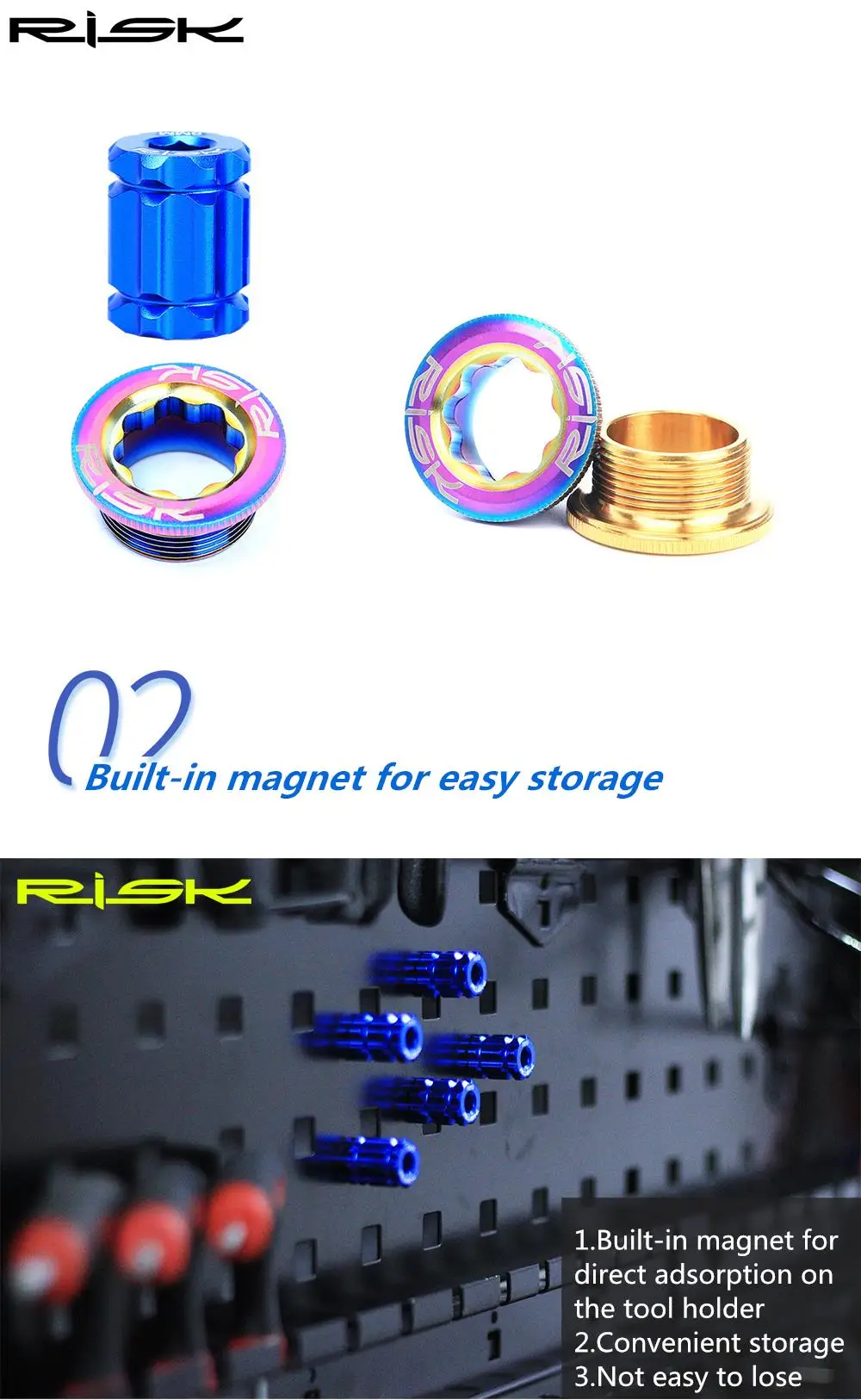 Точное соответствие, Разборка и сборка не повреждают нить Точный размер, повторная Разборка и сборка не повредят Винты/аксессуары. Примечание: винт предназначен только для демонстрационных целей и не входит в комплект. 2. Встроенный магнит для удобного хранения 1. Встроенный магнит для прямой адсорбции на держателе инструмента 2. Удобное хранение 3. Не легко потерять
