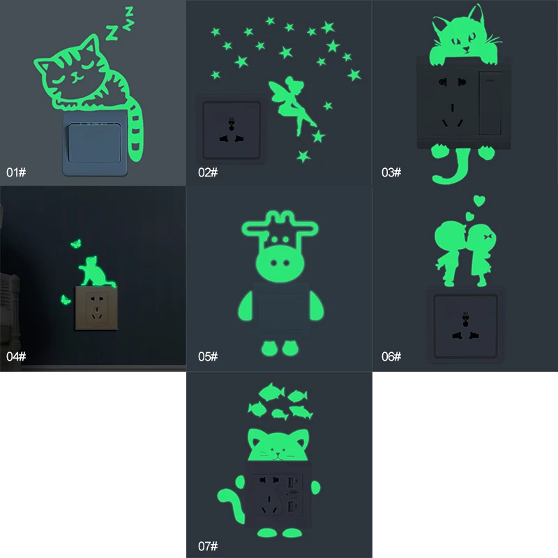 Светящийся Переключатель Наклейки светится в темноте декоративный стикер детская комната украшение дома мультфильм кошка собака Фея Звезда настенные наклейки