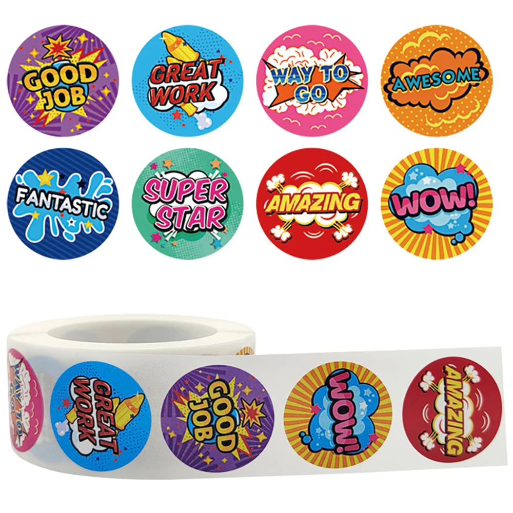 Наградные наклейки: этот пакет поставляется с наклейкой в рулоне с 500 штук с 8 различными ободряющими фразами с милым животным.