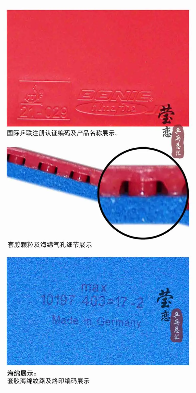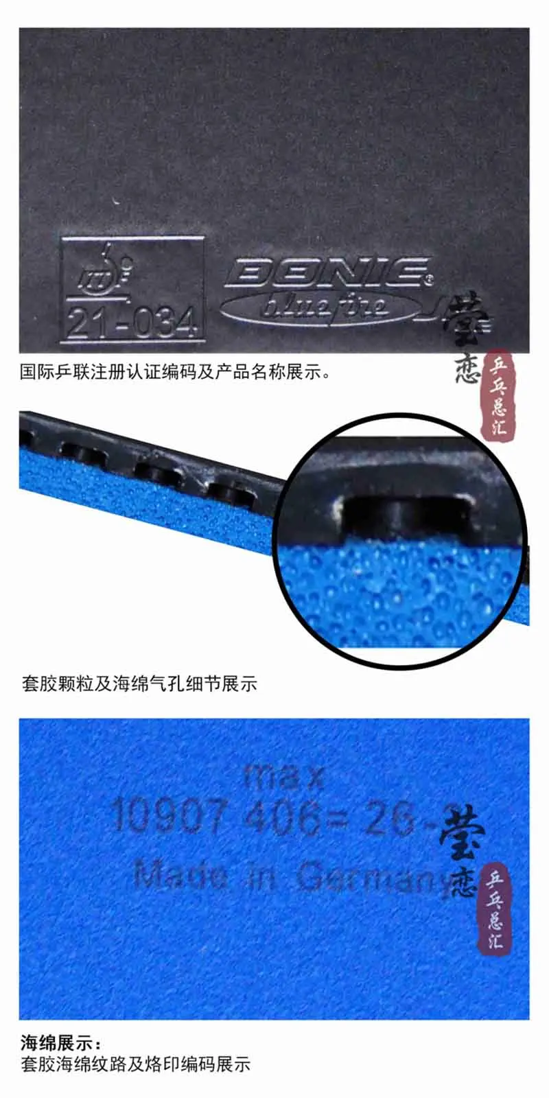 Official introduction: adhesion, tighten the elastic rubber surface, flexible combination of super power blue sponge, topspin when maximum rotation, the ball's longer stay on the floor. New big pores provide better rebound sponge, improvement of the internal energy technology is a more rapid energy, increase the use time of about fifty percent.
