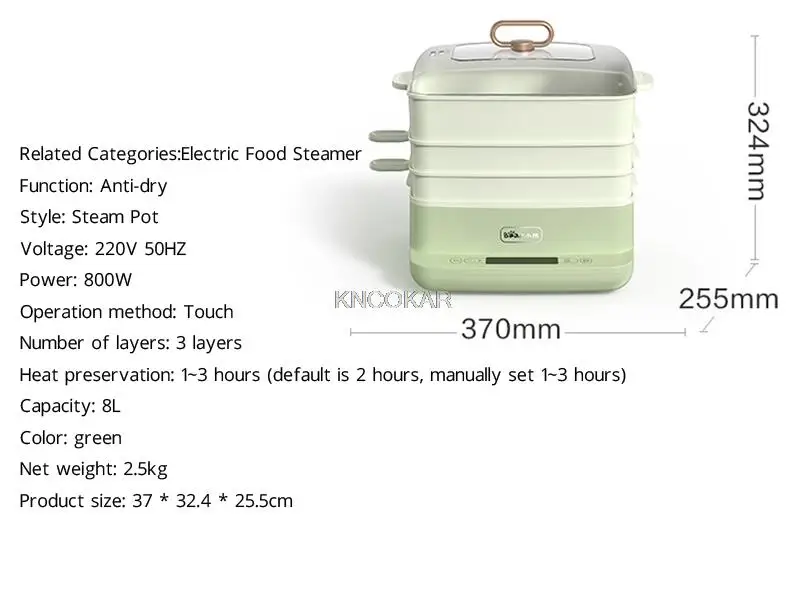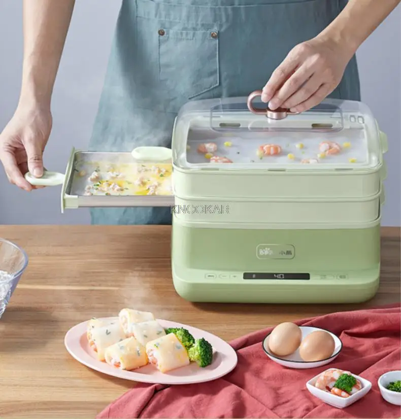 1. Двухслойная пароварка, два порции колбасного порошка за раз, большая емкость для отпаривания завтрака на одном слое, 3 слоя в общей сложности