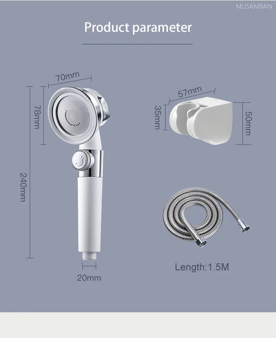 1. Изготовлен из АБС-пластика, душевая головка легкая, прочная и долговечная.