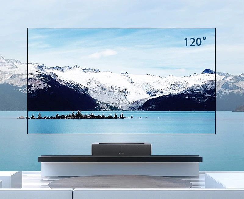 Сравните с небольшим размером телевизора. Экран 120 дюйма позволяет вам наслаждаться собственным кинотеатром прямо у вас дома.