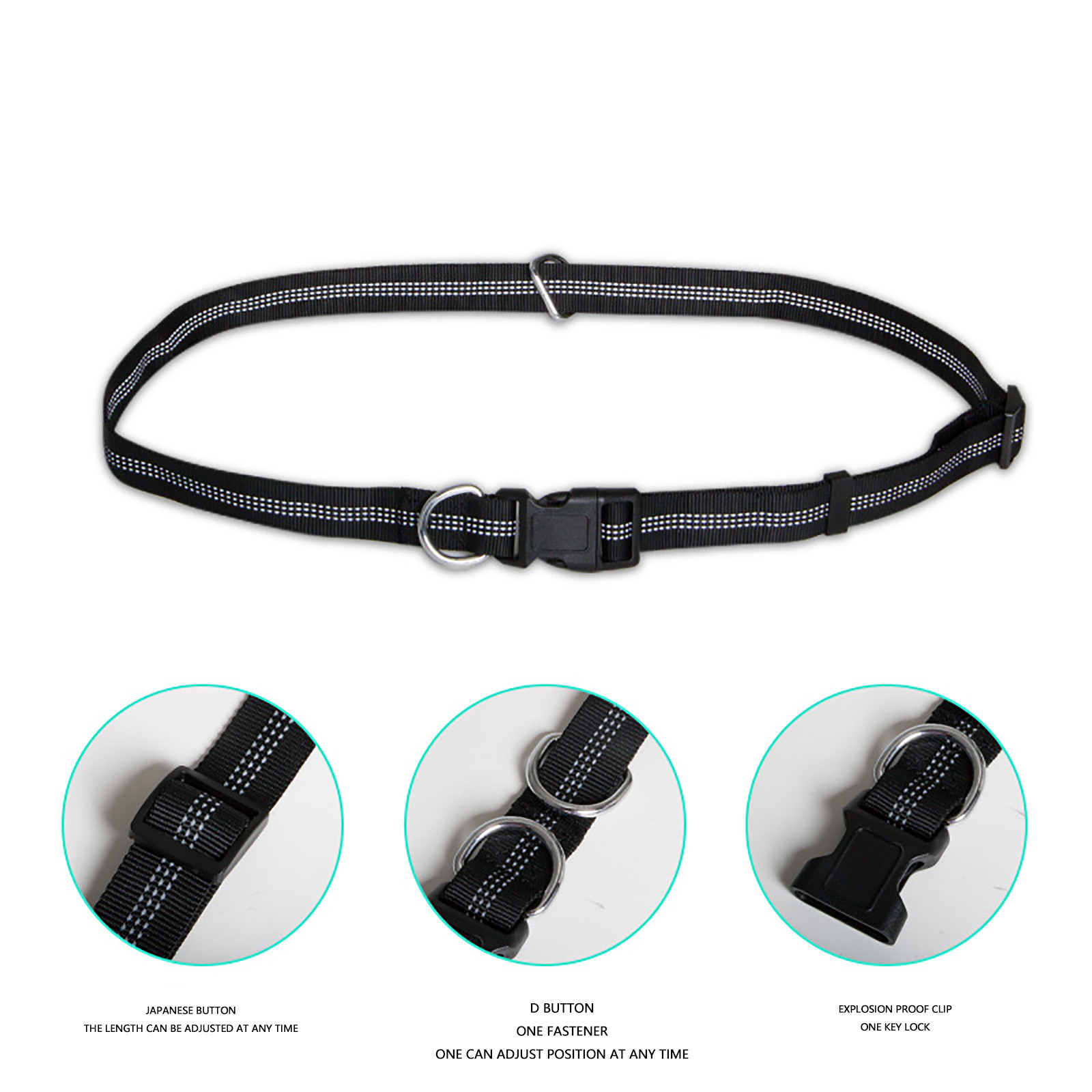 Пояс поводка для собаки имеет фиксированное кольцо D и подвижное уплотнительное кольцо. Вы можете прикрепить Поводок Банджи к любой из них. Подвижное уплотнительное кольцо позволяет вашей собаке двигаться более свободно и устраняет запутывание. Набор поводков без рук подходит мужчинам и женщинам с размером талии 86 - 117 см.