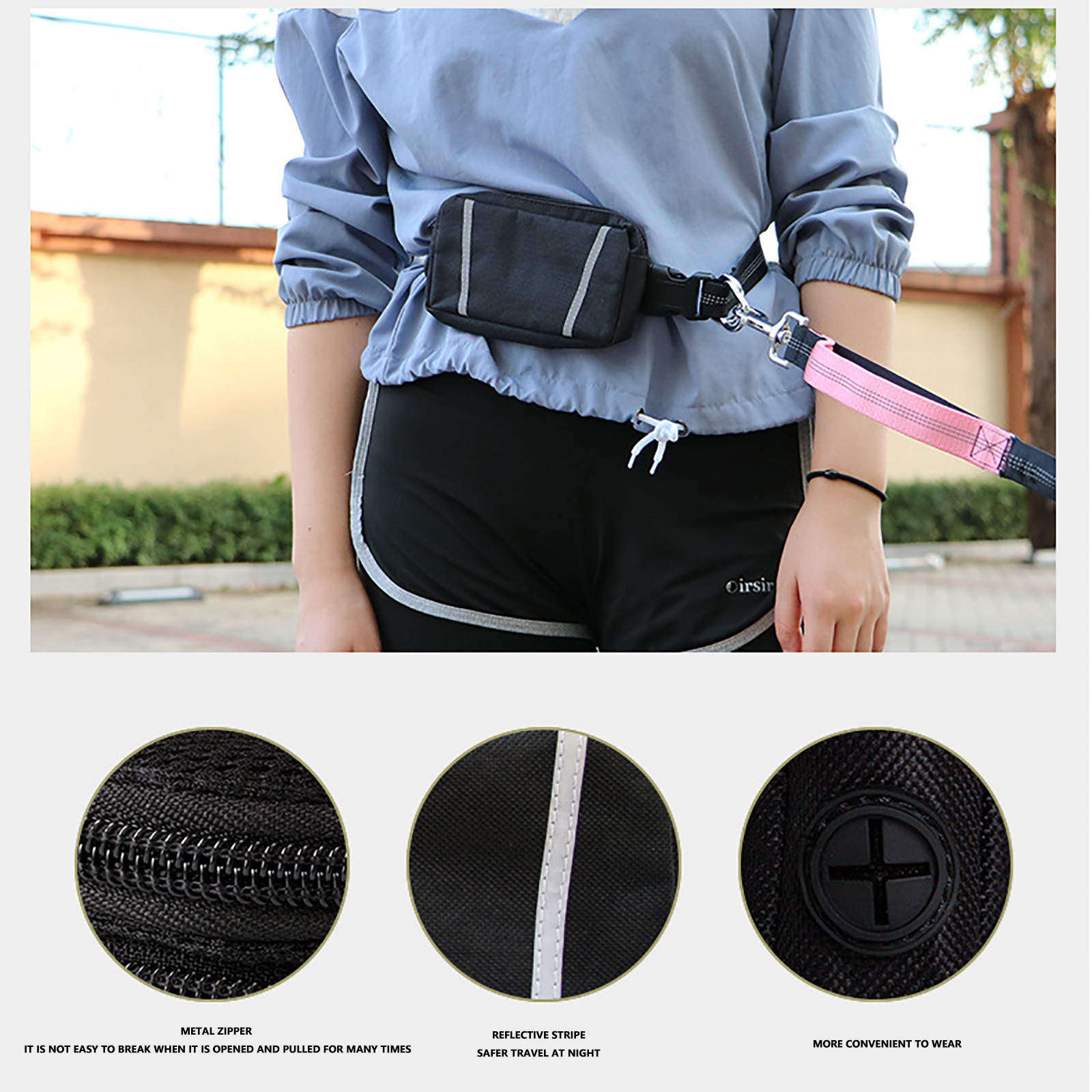 Поводок для бега с собакой также включает Поясную сумку с 2 карманами, предназначенную для хранения сумок и необходимых вещей, таких как телефоны, ключи и карты. Свободные руки позволяют выполнять множество задач.