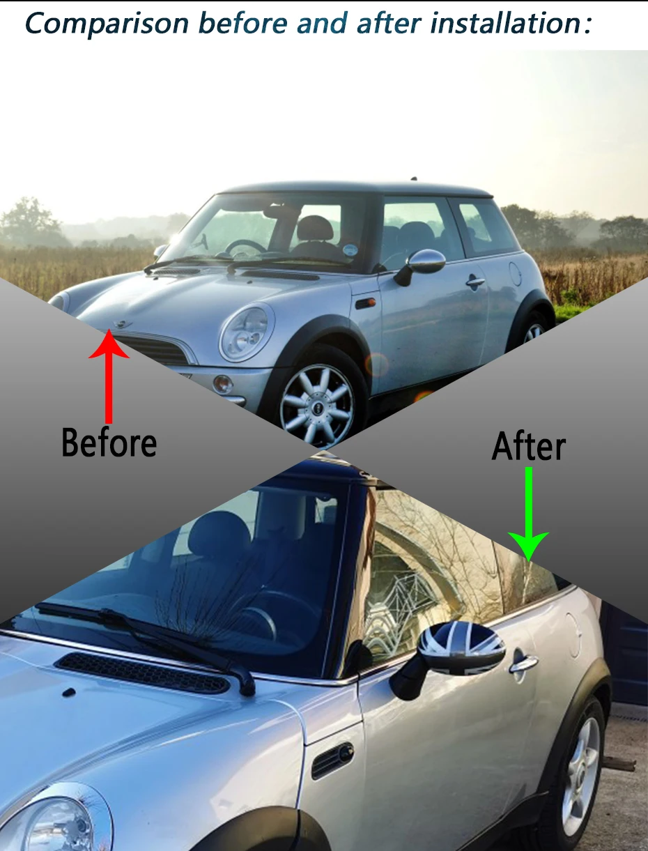 Выньте стикер зеркала заднего вида и поместите его на зеркало заднего вида для сравнения положения установки. Пожалуйста, не вставляйте непосредственно, чтобы не допустить скручивания наклейки (если она не подходит, сначала свяжитесь со службой поддержки клиентов, а затем установите ее, В противном случае его нельзя вернуть или заменить, если он поврежден).