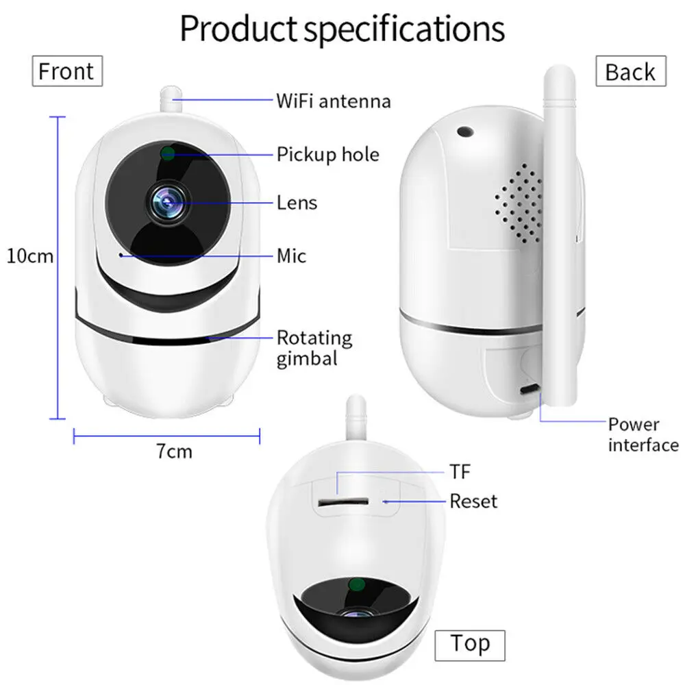 * Разрешение Full HD 1080P. * Мощные ИК-светодиоды 6 шт. для ночного видения до 32 футов. * Быстрый доступ к qr-коду и удаленный просмотр в приложении Tuya или Smartlife для iOS и Android. * Превосходное двустороннее аудио со встроенным микрофоном и динамиком. * Встроенный слот карты Micro SD, способный хранить до 64 Гб кадры (sd-карта не входит в комплект). * Поддержка облачного сервиса Tuya. Стандартные/премиальные планы AWS (требуется дополнительная оплата). * Широкоугольный объектив 85 ° обеспечивает Панорамное покрытие 355 °.