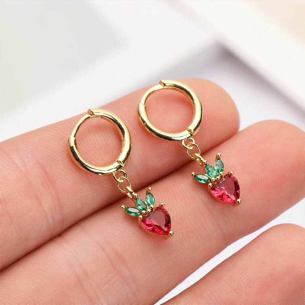 1. Материал: серьги с фруктами изготовлены из латуни, позолота 18 К, с блестящими AAA + Фианит, без никеля и без примесей свинца и гипоаллергенная отлично подходит для всех цифровых кожи, легкие и удобные в носке.