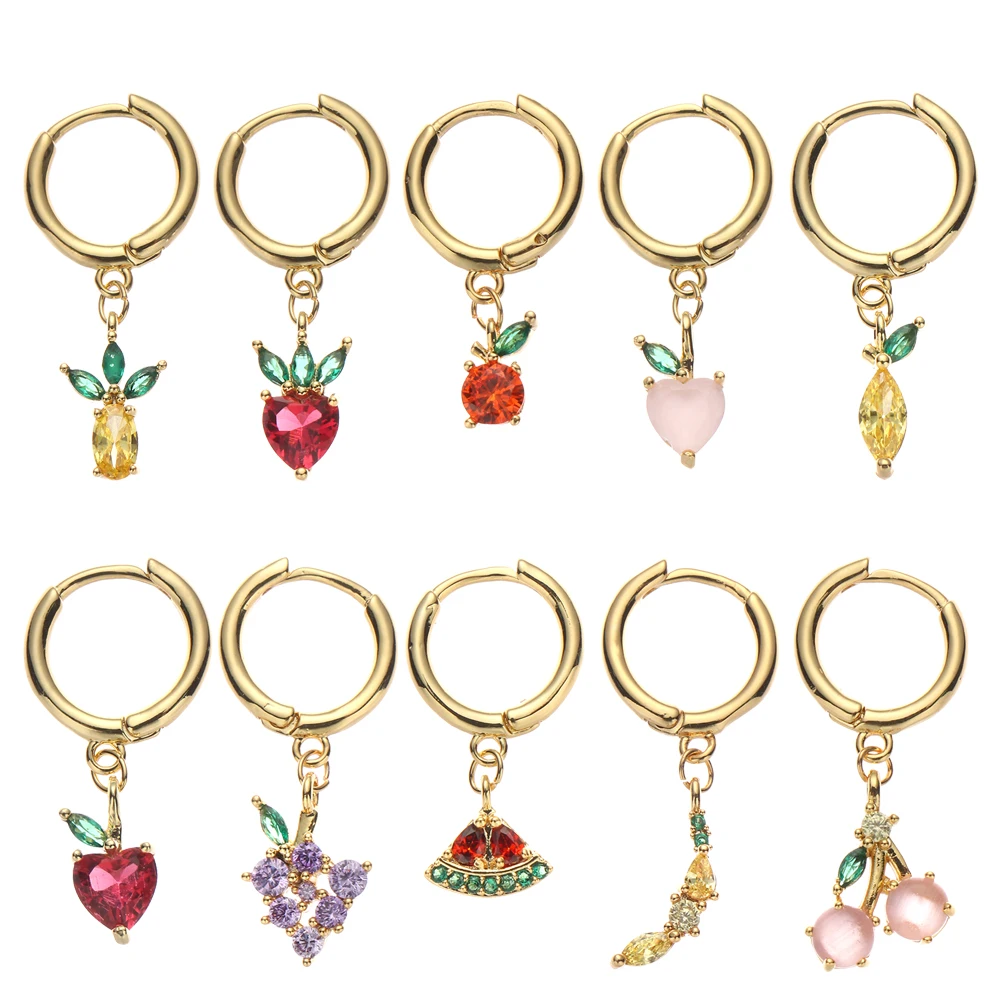 Серьги с фруктами, новые аксессуары, Кристальные серьги-гвоздики в форме фруктов для женщин, милые вишенки, ананас, виноград, подарок, маленькие блестящие серьги