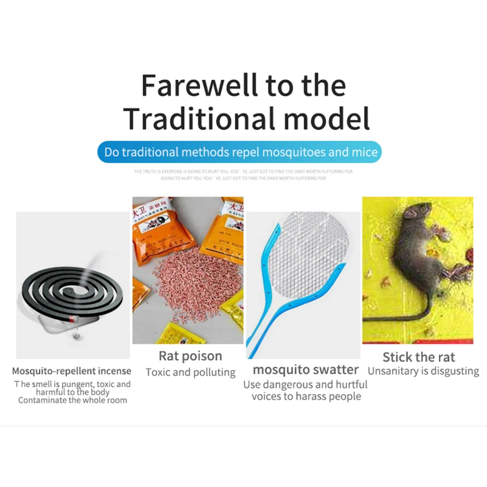 4. Научность: Отпугиватель мыши-это инструмент, основанный на профессиональном дизайне электронных технологий и многолетних научных исследованиях, которые могут генерировать ультразвуковые волны определенной частоты для вытеснения мышей. Цель-создать высококачественное пространство без мышей и вредителей.