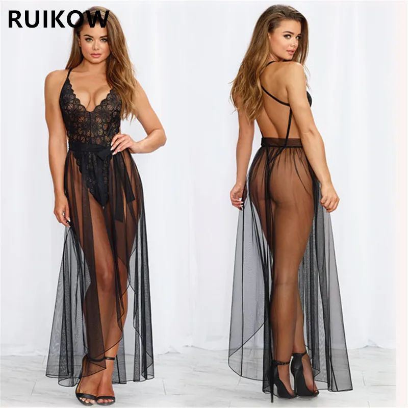 Женское кружевное нижнее белье Fermale, длинное эротическое нижнее белье с V-образным вырезом