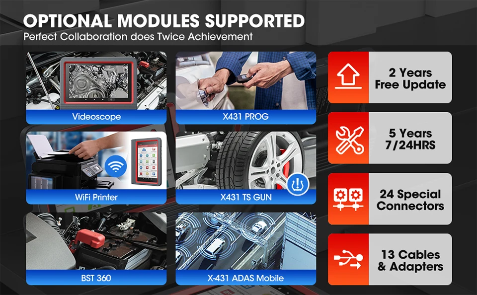 ✅【Поддержка Wifi принтер/Видеоскоп/TSGUN/ X431 PRO G дополнительные функции 】✔️Videoscop: Проверьте невидимые части двигателя, системы топливного бака и т. Д.✔️X431 TSGUN: Активируйте все датчики, TPMS relearn, датчики запуска программы✔️X431 прог: Функции IMMO для группы VAG выше 3,5✔️X431 принтер: Распечатать диагностические данные/отчеты.