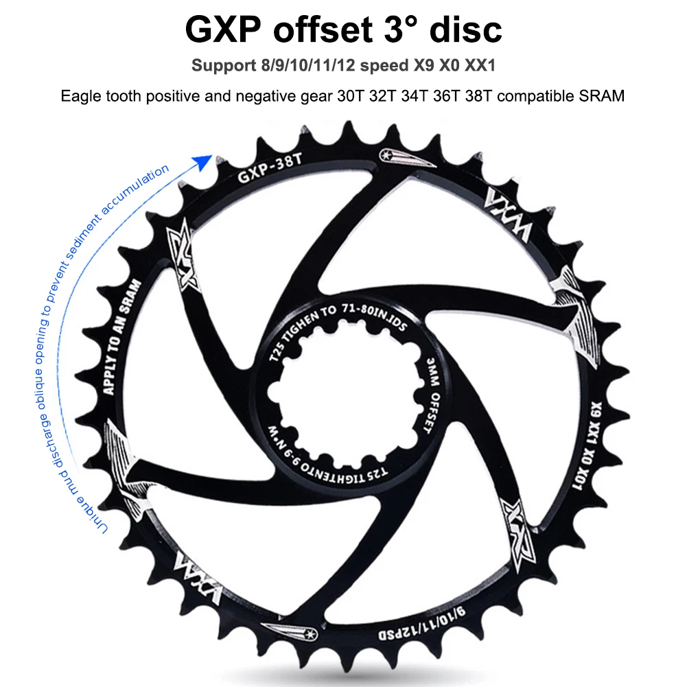 Велосипедная Звездочка 34T 36T 38T 40T велосипедная односкоростная кольцевая узкая широкая цепь для sram gx xx1 X1 x9 GXP pedivela офсетная 3 мм