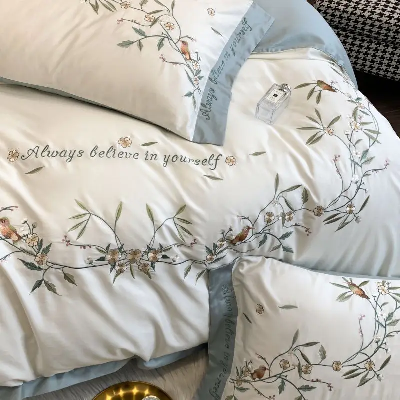 Размер королевы 4 шт 1 пододеяльник: 200*230 см (79*91 дюймов) 1 шт. плоская Простыня: 245*250(96*98 дюймов) 2 наволочки: 48*74 см (19*30 дюймов) Размер King 4 шт. 1 пододеяльник: 220*240 см (87*94 дюйма) 1 шт. плоская Простыня: 245*270(96*106 дюймов) 2 наволочки: 48*74 см (19*30 дюймов)
