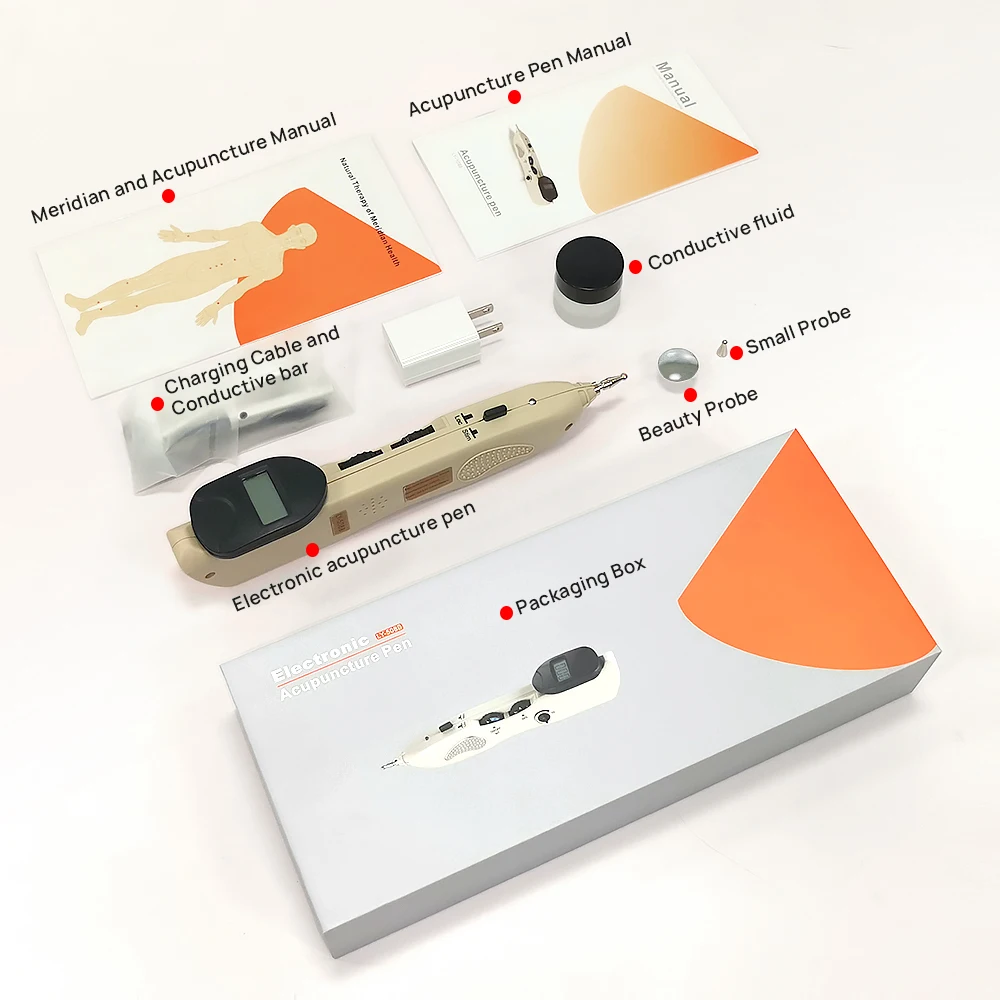 1 * электрическая ручка для иглоукалывания 1 * Подарочная коробка пластиковая упаковка 3 * зонды для иглоукалывания 1 * пустая банка (гель в комплект не входит) 1 * проводящий стержень 1 * стандарт США/ЕС настенное зарядное устройство и USB зарядное устройство 1 * Руководство пользователя на английском языке