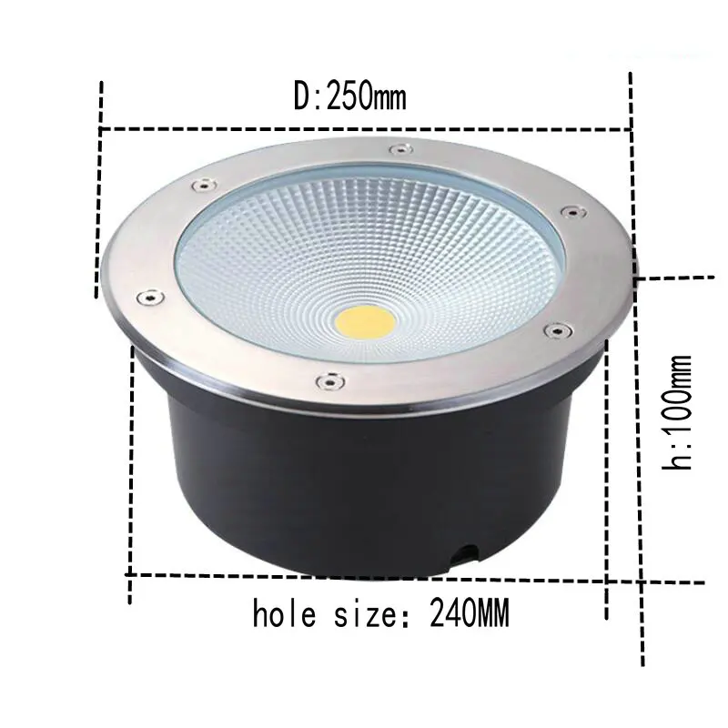 Входное напряжение: AC85V ~ 265V Мощность: 40 Вт Мощность фактора: 0,9 CRI:Ra>90 Угол луча: 120 градусов Уровень защиты: IP68 Температура:-20 ~ 60C0 Срок службы: 30000 ~ 50000 ч Гарантия: 5 лет Световой поток: 100 лм/Вт Материал: закаленное стекло + алюминий Размер: d250мм * h100мм, Цветовая температура: теплый белый: 2700K-3200K; Натуральный белый: 4000K-4200K; Холодный белый: 5500K-6000K