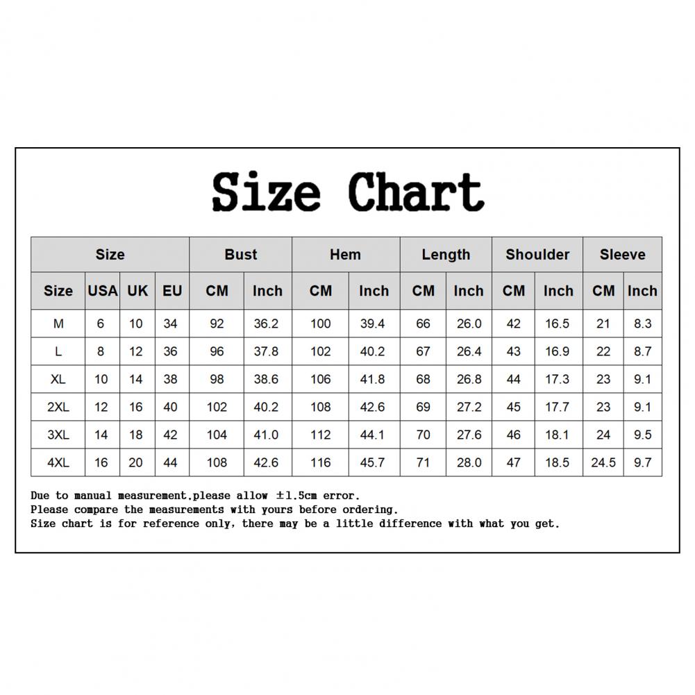 [Наши Размеры 4XL] Бюст: 108 см/42,5 ", Подол: 116 см/45,7", Длина: 71 см/28 ", плеча: 47 см/18,5", рукав: 24,5 см/9,6 "(прибл.)