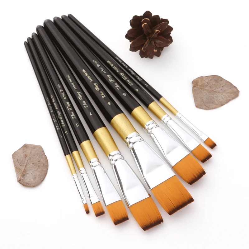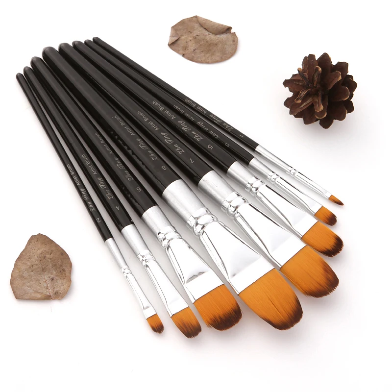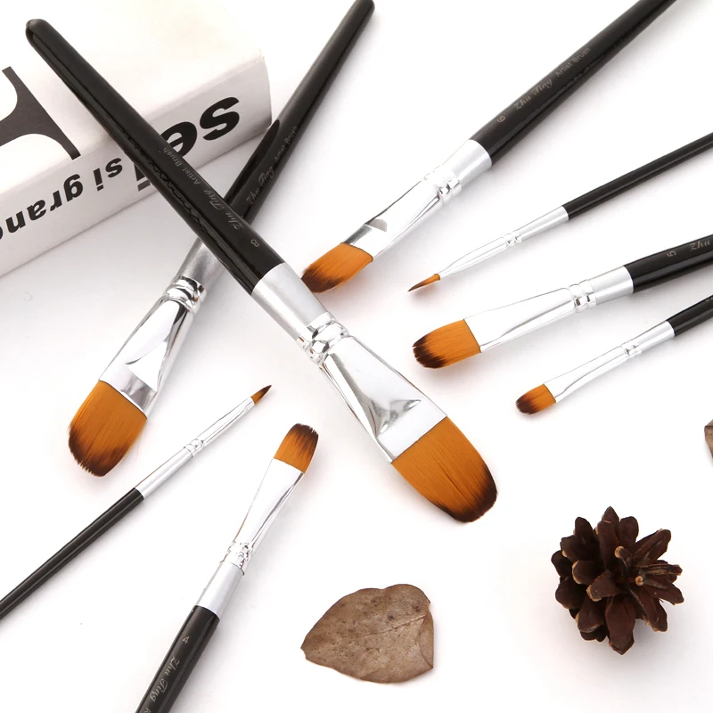 This product uses high-quality nylon wool as raw material, and it is made into a flat round peak brush with smooth stroke, good color absorption and good elasticity! Suitable for gouache, acrylic painting and gouache painting.