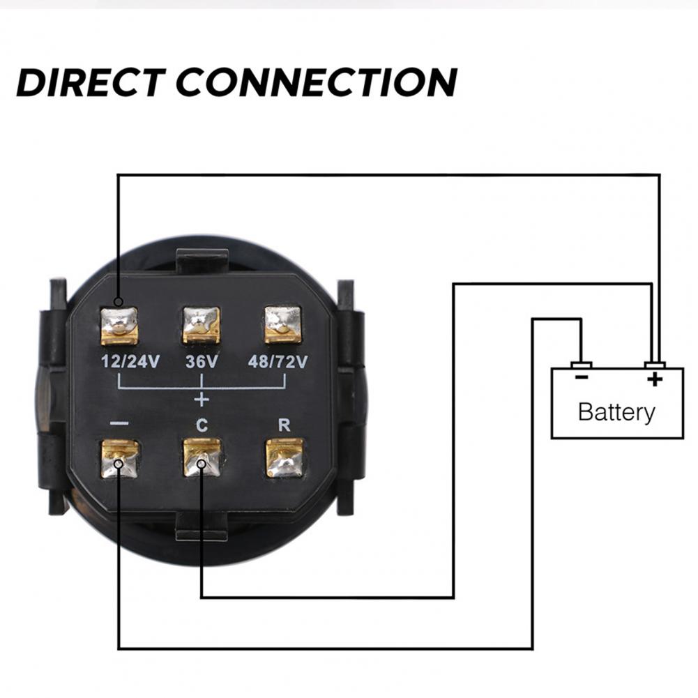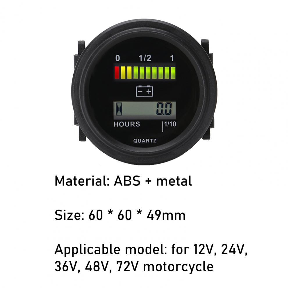 Индикатор батареи подходит для свинцово-кислотных батарей, которые могут использоваться с батареями 12 В, 24 В, 36 В, 48 В, 72 в.