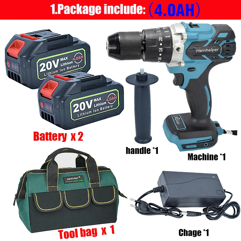 20V Электрический Аккумуляторный бесщеточный Ударная дрель мини Беспроводной отвертка Мощность инструмент 13 мм 20 крутящий момент 115NM 2-Скорость DC Li-Ion батареи