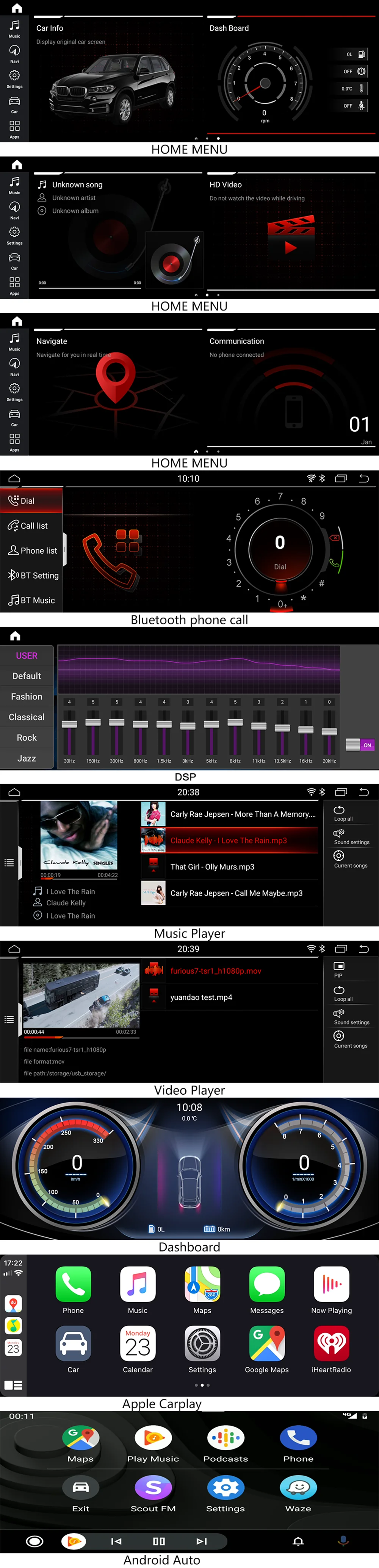 21. SupportAndroid мультимедийный плеер, он может воспроизводить музыку/Кино/фото с местного диска или подключенной tf-карты.