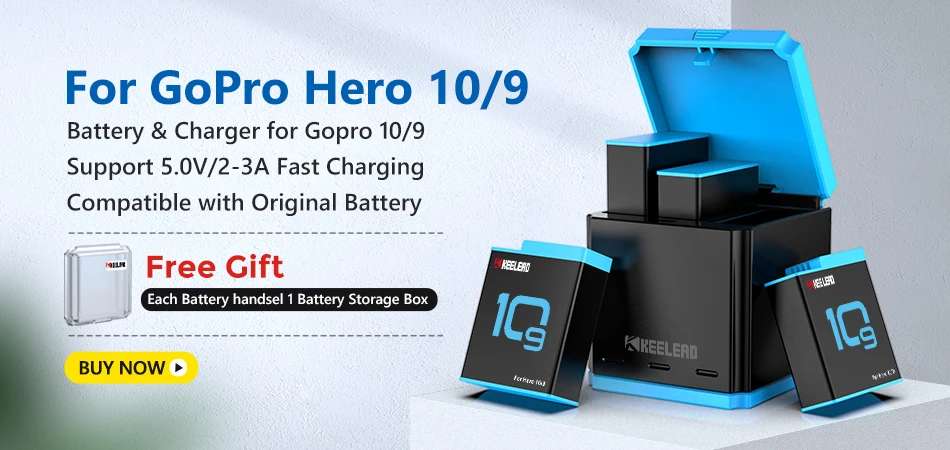 Original KEELEAD Battery For GoPro Action Sports Camera 1750mAh 3-Ways Fast Charger For Go Pro Hero 10 9 8 7 6 Black Accessories