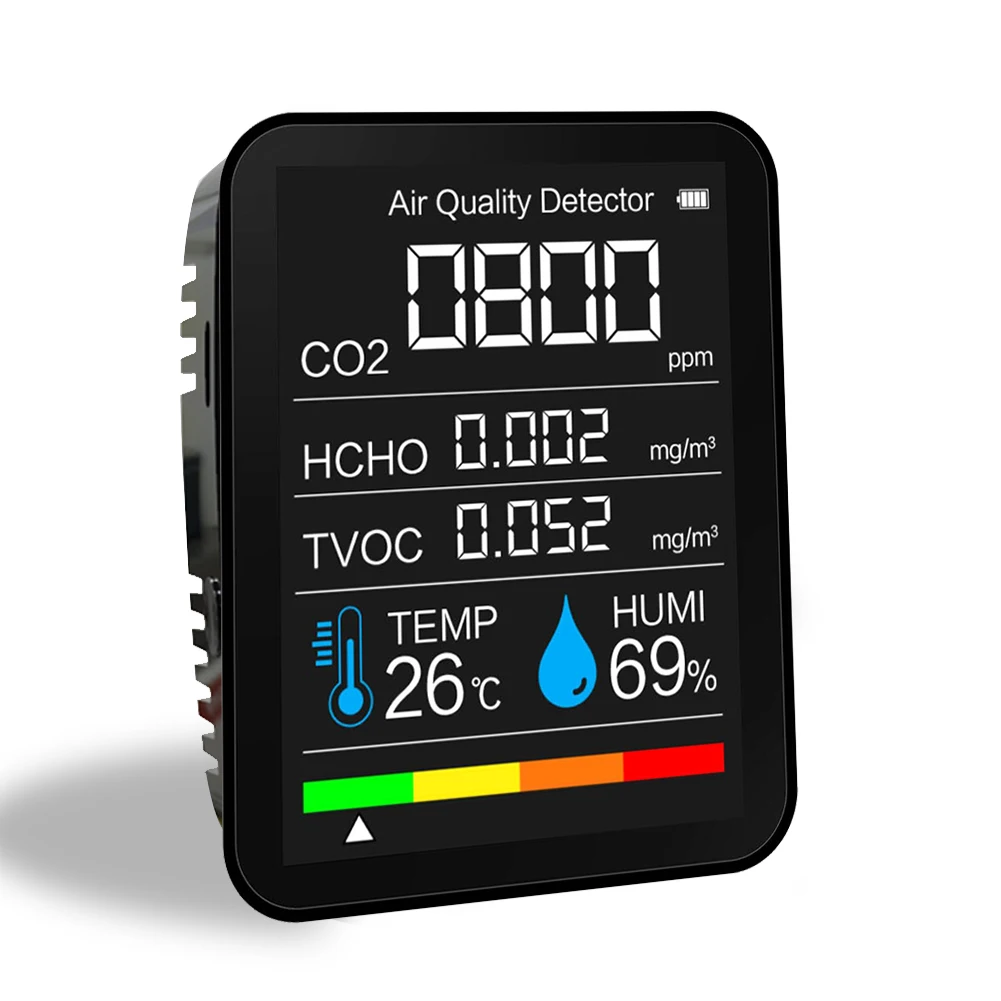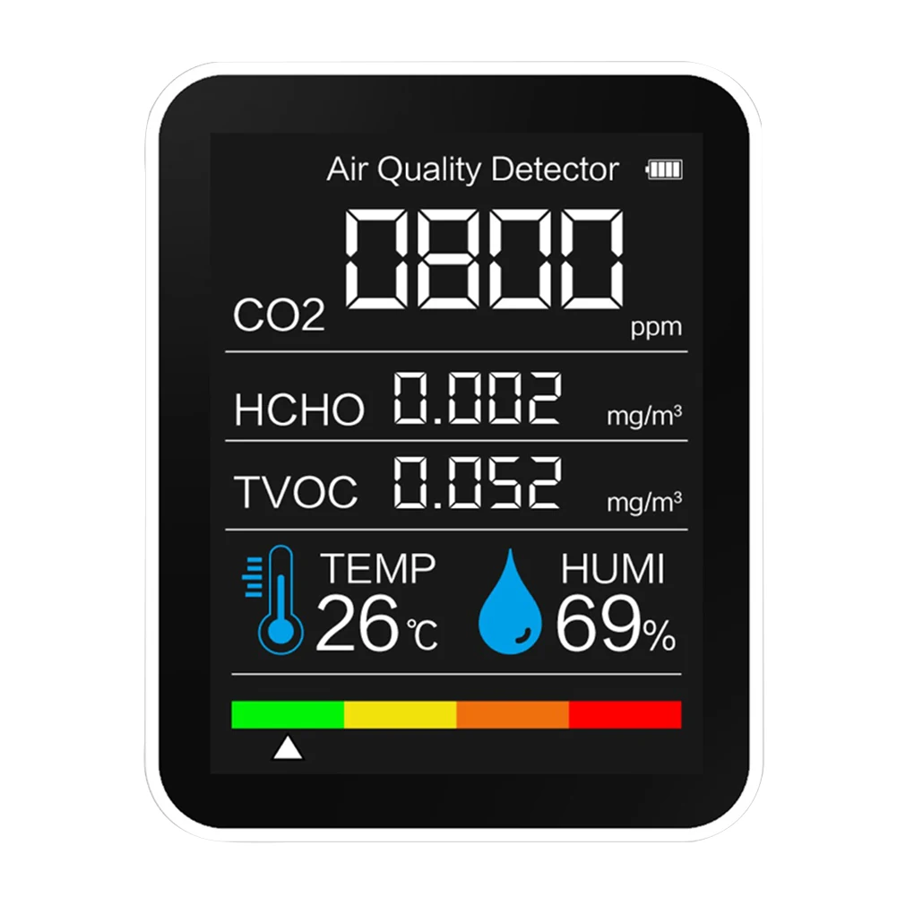 Детектор углекислого газа: умный тестер значений углекислого газа газовый анализатор использует воздушный полупроводниковый датчик TVOC для контроля температуры и влажности воздуха, содержания углекислого газа, формальдегида и летучих веществ в воздухе.