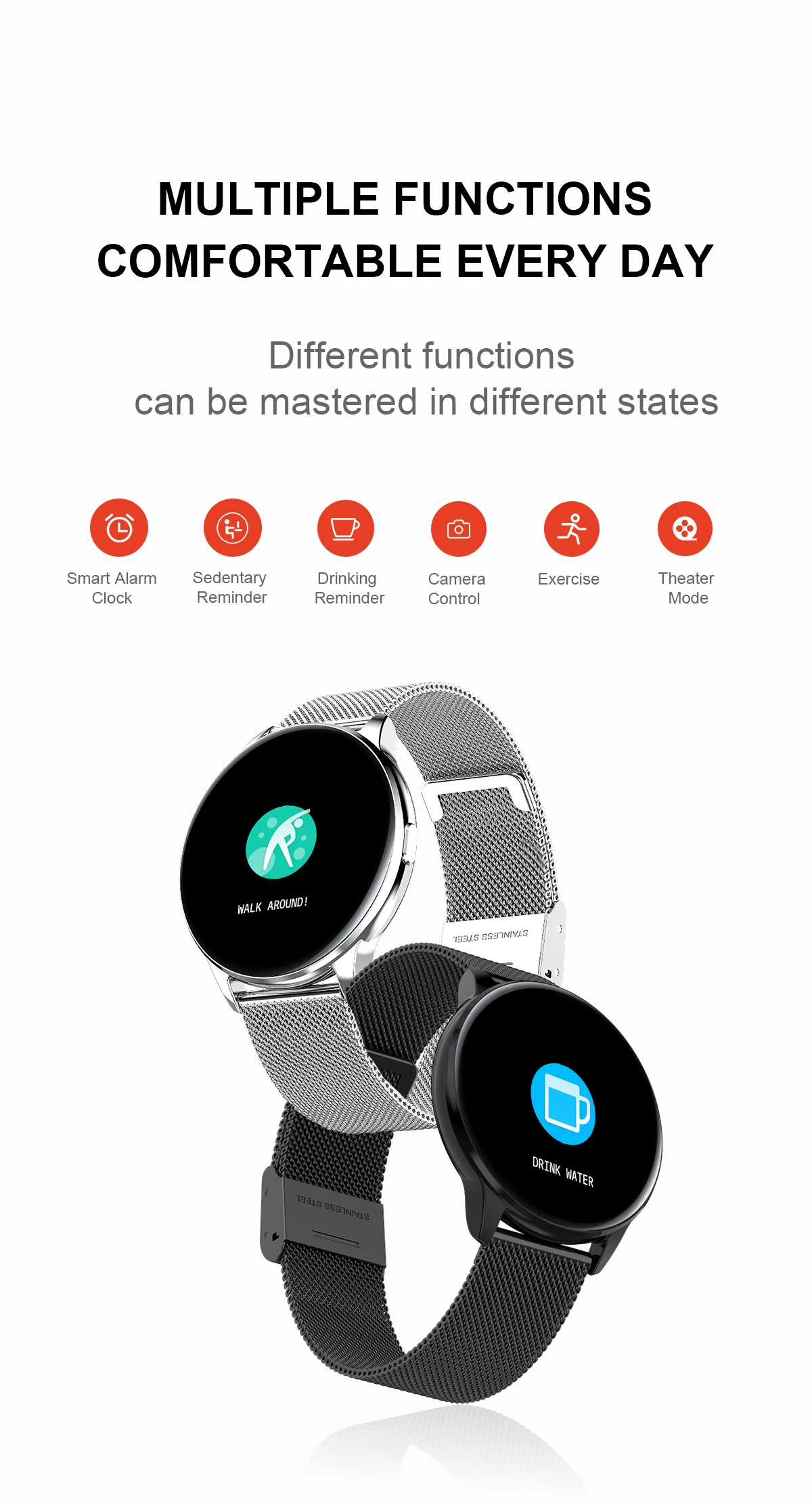 Умное напоминание: напоминание о будильнике на заказ, напоминание о сидячем положении, напоминание о входящем вызове, информационный push (SMS / QQ / WeChat)