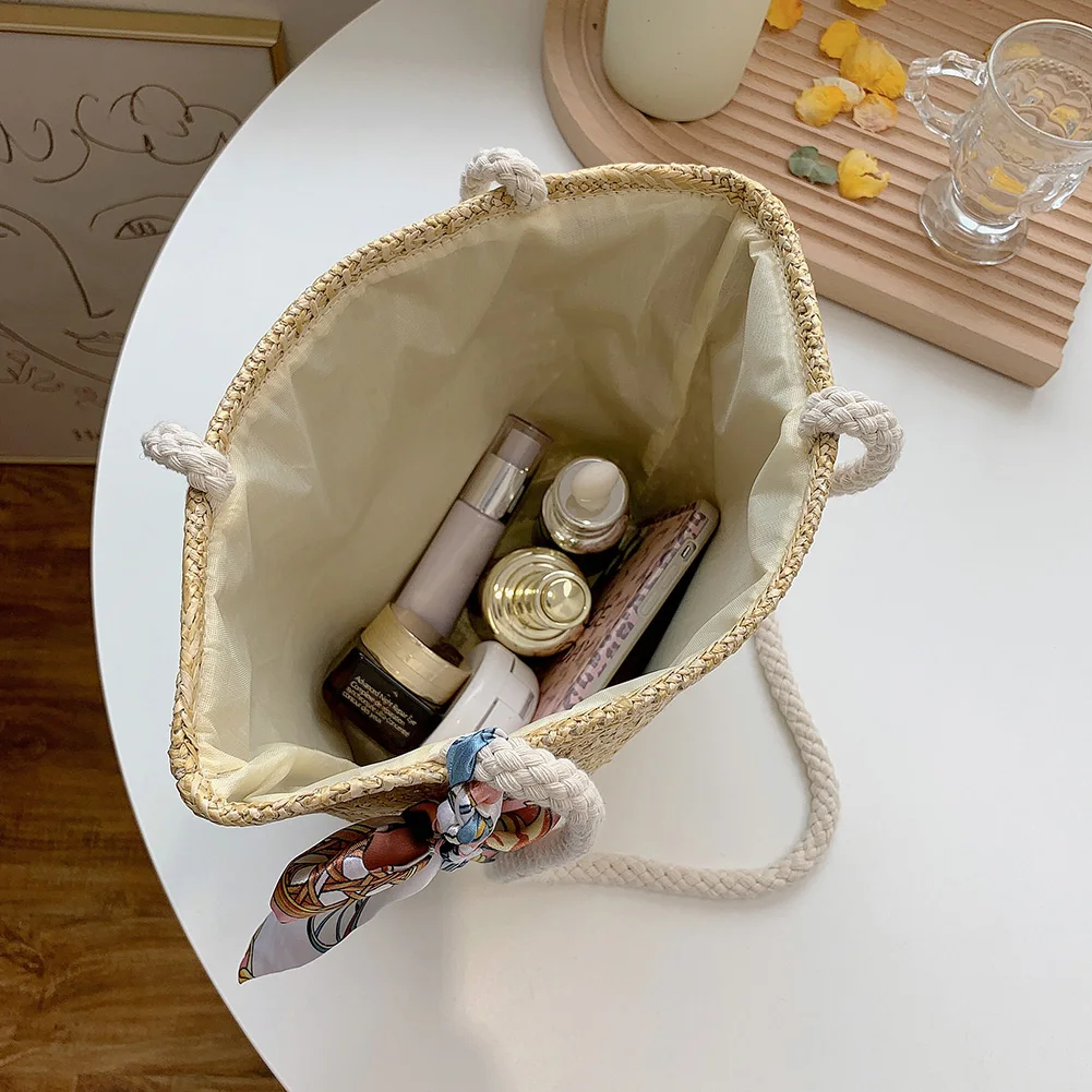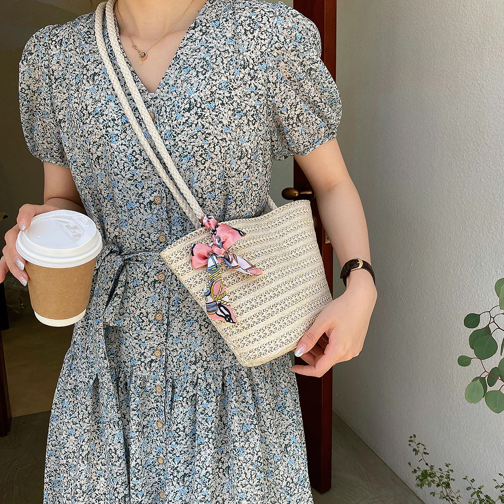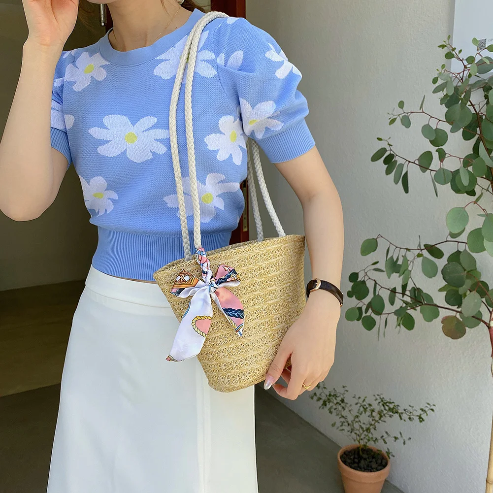 Летние соломенные сумки на плечо для женщин 2021 плетеные сумки из ротанга женские ленты шелковый шарф богемные пляжные сумки и кошельки