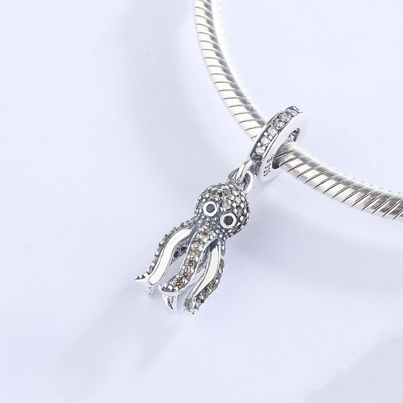 925 Стерлинговое Серебро Милый морской жизни Осьминог браслет с подвеской модные ювелирные изделия DIY Изготовление для оригинальной Pandora