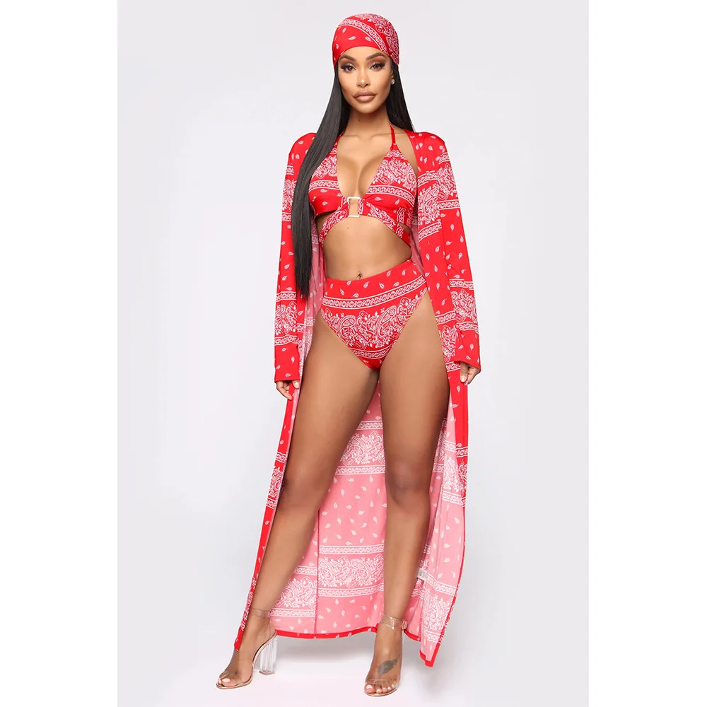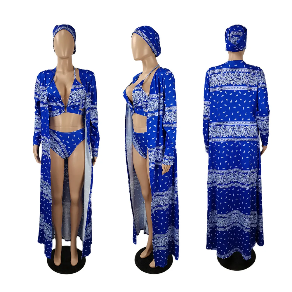 4 шт./компл. комплект бикини и накидка с длинным рукавом, купальный костюм для женщин, купальник с принтом, купальный костюм, пляжная одежда, купальный костюм