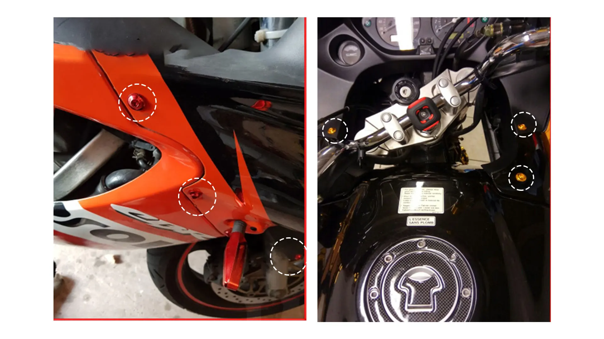 Эти болты не являются OEM болтами,Диаметр винтов/болтов может быть меньше, чем OEM Винты/болты.Если ваш велосипед имеет специальные болты OEM (полуповоротные, быстросъемные и т. Д.), мы заменим их на наши собственные болты.Пожалуйста, не ожидайте OEM болтов.