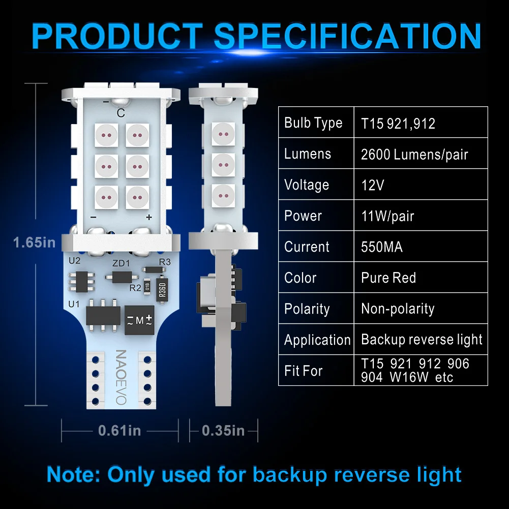 NAO стробоскоп T15 W16W светодиодный Обратный Свет