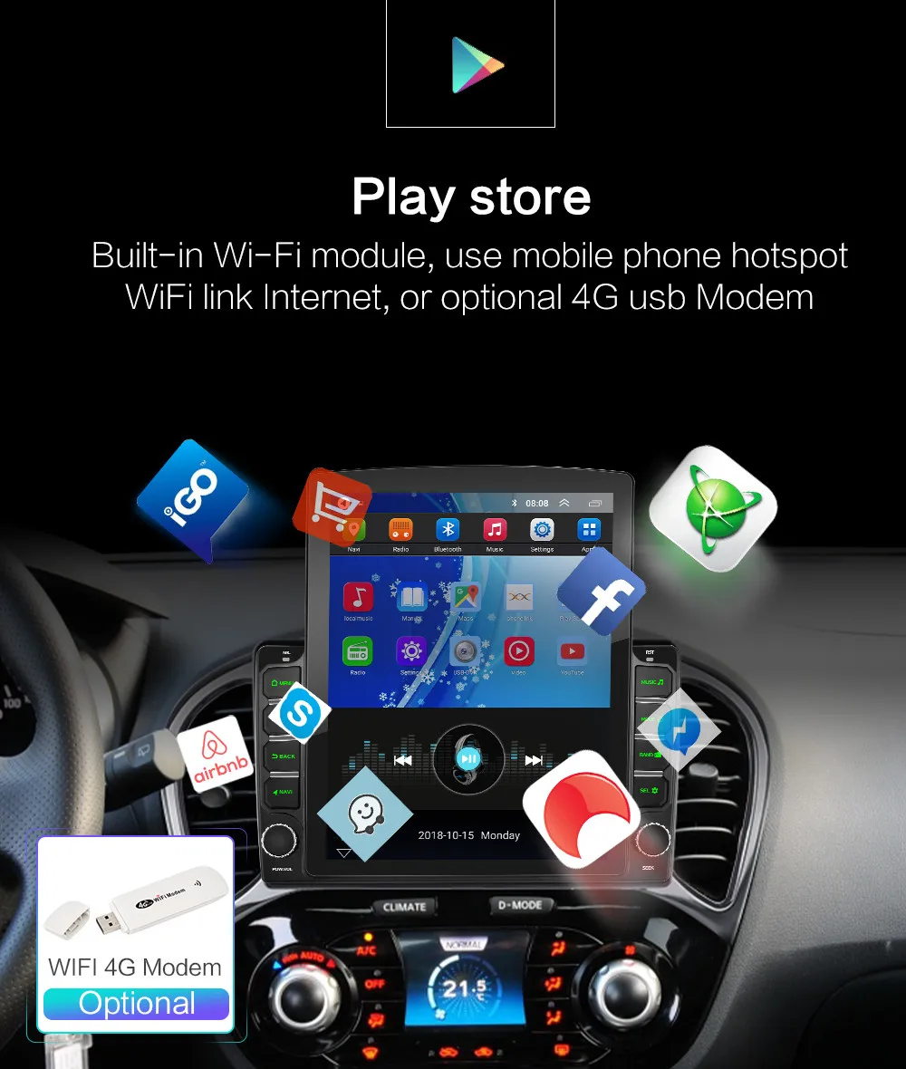 6, Support :radio station, Bluetooth call, Bluetooth music, steering wheel control, built-in WiFi, MP3, video music (MPG, AVI), navigation, video output, mirror link, USB 4G LTE WIFI Dongle and other functions ;