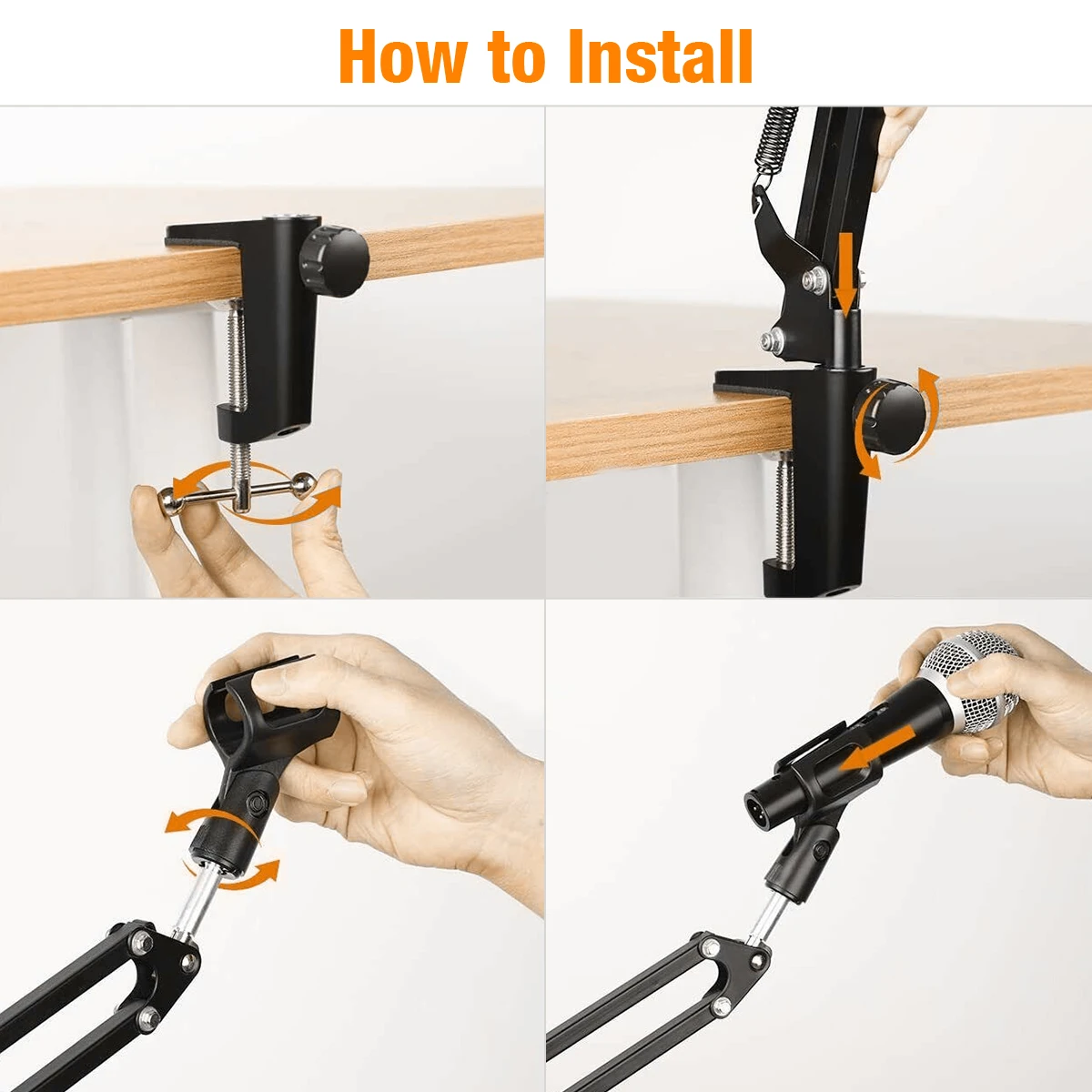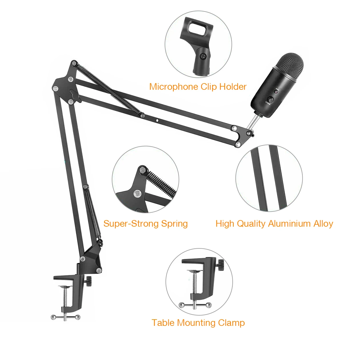 1. Может быть установлен на столе диктора через монтажный зажим (в комплекте). 2. Тип складывания, удобно носить с собой. Регулируемые ручки позволяют легко носить с собой и регулировать подходящий угол и высоту, чтобы показать ваш идеальный голос. 3. Подставка для ножниц оснащена сверхпрочной пружиной, чтобы выдерживать гораздо больший вес. 4. Идеально подходит для радиовещательной студии, голосовой студии, сцены и ТВ-станций и т. Д.