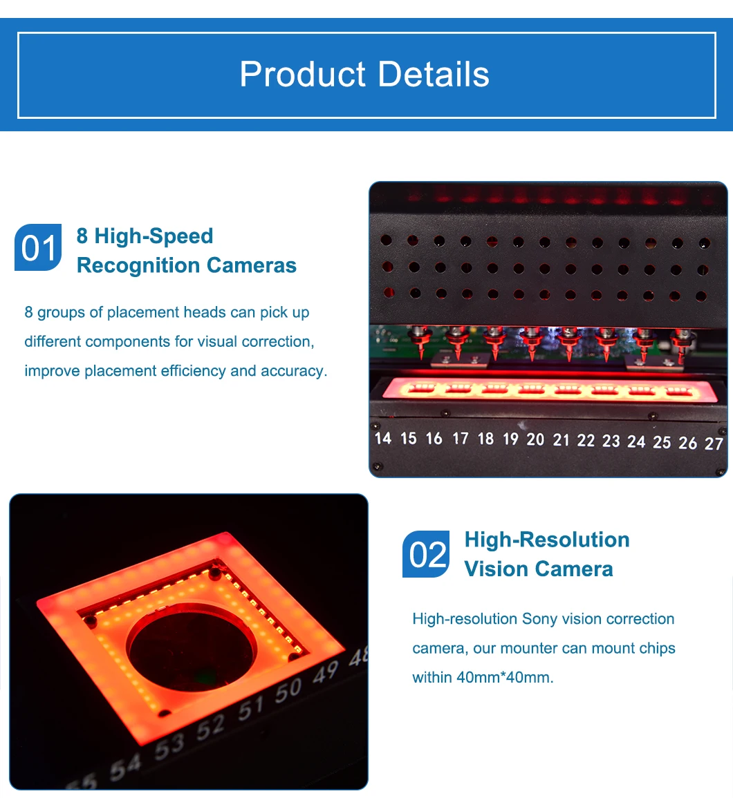 Машина SMT880 с 8 головками + 10 камерами + 80 ПИТАТЕЛЕЙ + трехступенчатая дорожка + Серводвигатель Panasonic + направляющая винта.