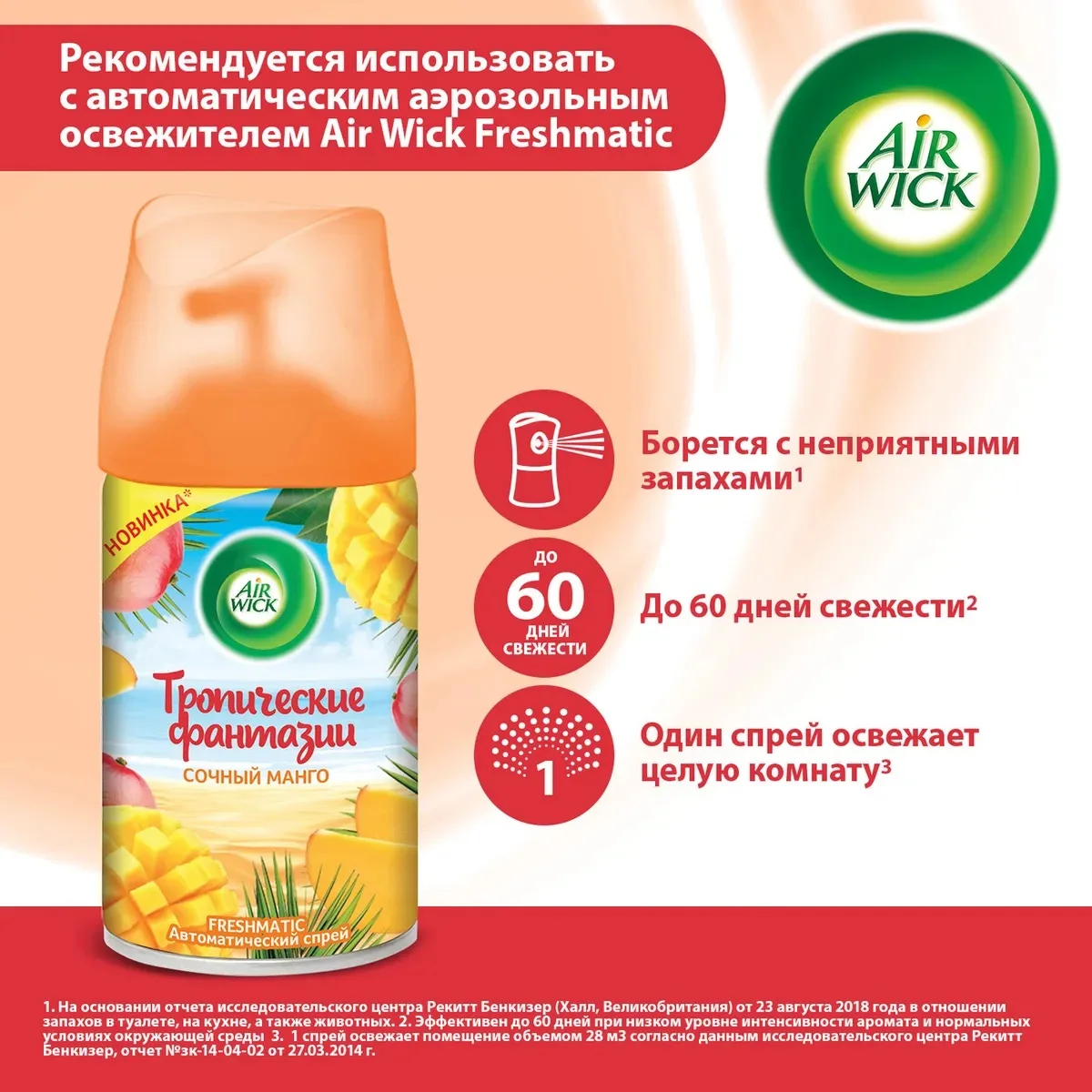Устройство, выберите интенсивность распыления, и воздух фитиль Freshmatic будет