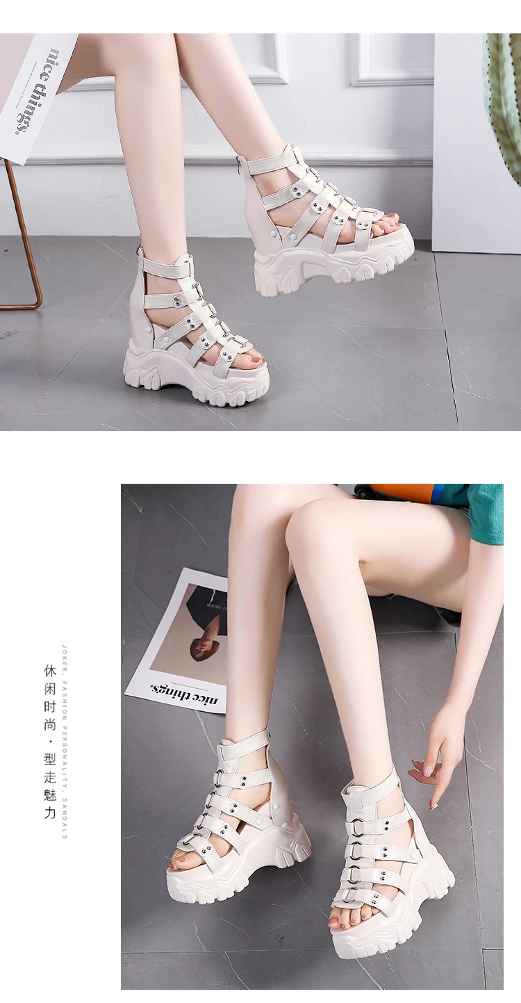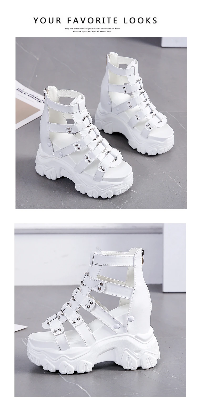 Женские сандалии-гладиаторы на толстой подошве; Женские летние массивные кроссовки; Босоножки на высокой платформе; Открытые пляжные сандалии на танкетке 8 см
