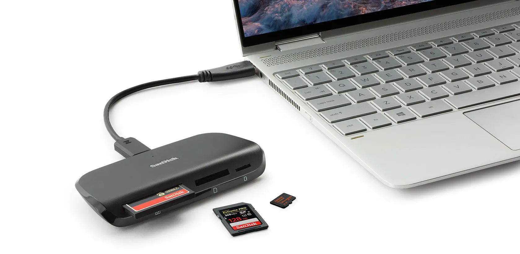Изображение SanDisk®Мультикард-ридер PRO работает с большинством популярных форматов карт, в том числе: SDHC™И SDXC™, MicroSD™И CompactFlash